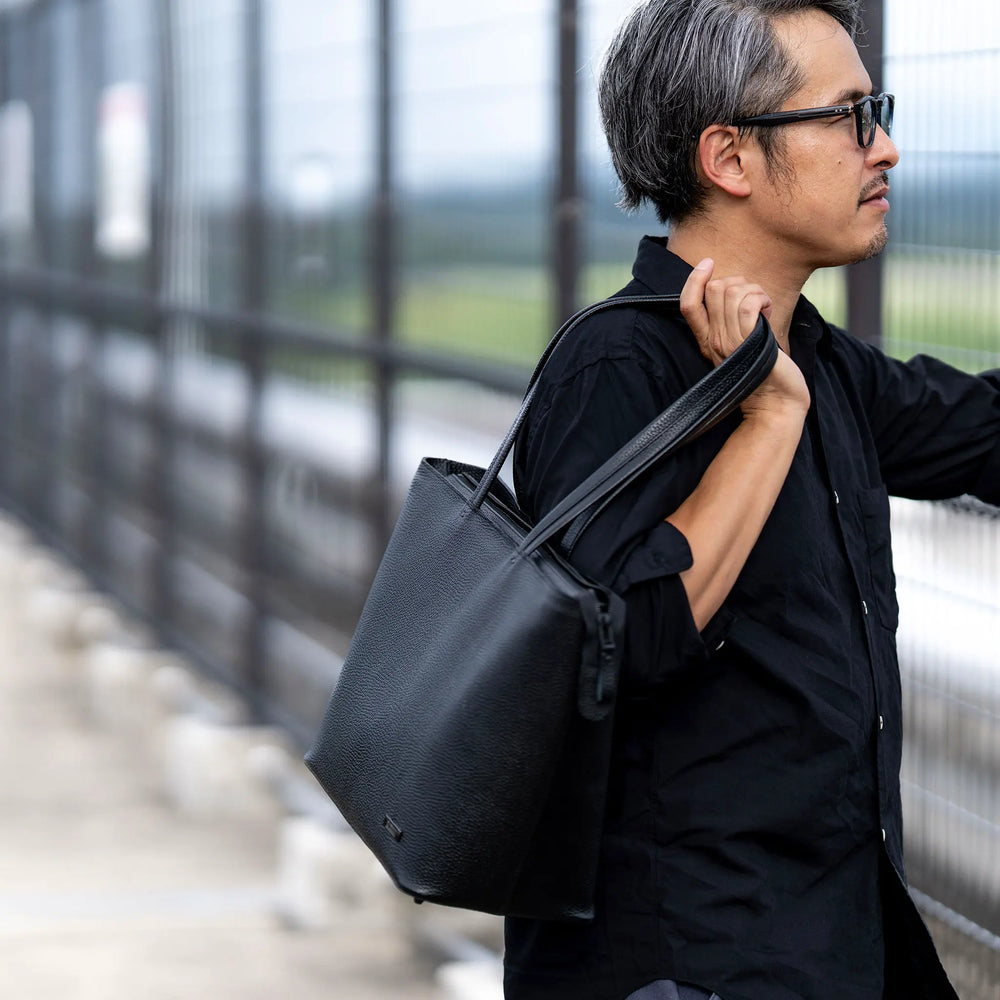 YouTubeでも紹介しています。 カワニシカバンでは「丈夫で型崩れが起きにくい」ことに着目した、高機能ビジネストートバッグを開発しました。 開発のきっかけ ビジネスシーンで「外見を整える」ことは、顧客からの第一印象を良くするだけでなく、自分の自信を高める効果もあります。 清潔で機能的、TPOに合ったスタイルは信頼性を高め、プロフェッショナリズムを示すことができます。 しかし毎日使い続けるカバンは、時間が経つごとに“よれ”や“たるみ”、“へたり”や“ゆがみ”が起き、清潔で美しい姿を保つことが難しくなってしまいます。 そこで「経年変化に強い素材」を採用し、「丈夫で型崩れが起きにくい」上質なビジネストートバッグの開発がスタートしました。 シンプルでありながら、重厚感のある本革レザートートは、人の手を離れた時に本領を発揮します。堅牢なフォルムを引き立たせる、まっすぐに立ち上がるハンドルが高級感を引き立たせます。 “違い”は細部に宿る 譲れない4つのこだわり ビジネスバッグを作り続けるカワニシカバンが、こだわった4つのポイントをご紹介します。 こだわり① 高機能ポケット こだわり② デザイン こだわり③ 厳選した素材 こだわり④ 細部の仕様 こだわり① 高機能ポケット トートバッグの内側は、ビジネスバッグで培った5つの機能を詰め込みました。 機能1 仕切りポケットがカバンを守る センター仕切りポケット 大きな特徴は、バッグ中央にあるバッグの中を整理できる「仕切り」と「ポケット」を兼ねてつけた「仕切りポケット」です。 重量のあるパソコンを仕切りポケットに入れバッグ中央に収納することで、バッグの中心に重心が収まり、バッグが安定します。 またバッグの型崩れを防止したり、自立を促したりする効果もあります。 機能2 美しく機能的なレザー付きポケット 仕切りポケットの入れ口は、本体と同じレザーをあしらいました。 バッグを開けた時の美しさと、入れ口を補強しバッグを守る機能があります。 機能3 荷物を守るマイクロファイバー パソコンをそのまま入れられるよう、仕切りポケットの内側には、優しい肌触りのマイクロファイバー生地を採用しています。 機能4 計算された側面ポケット 前面/ポケット×3個 前面にはカワニシカバンで販売しているコンパクトな長財布ricchyL[リッチーL]、大容量名刺入れsimeM[シームM]、コンパクトなキーケースkeyt[ケイティ]がぴったり入るよう設計されたポケットをつけました。 背面/ファスナー付きポケット 背面には、ファスナー付きのポケットをつけています。美しさと強度を上げるレザーの縁取りがポイントです。...