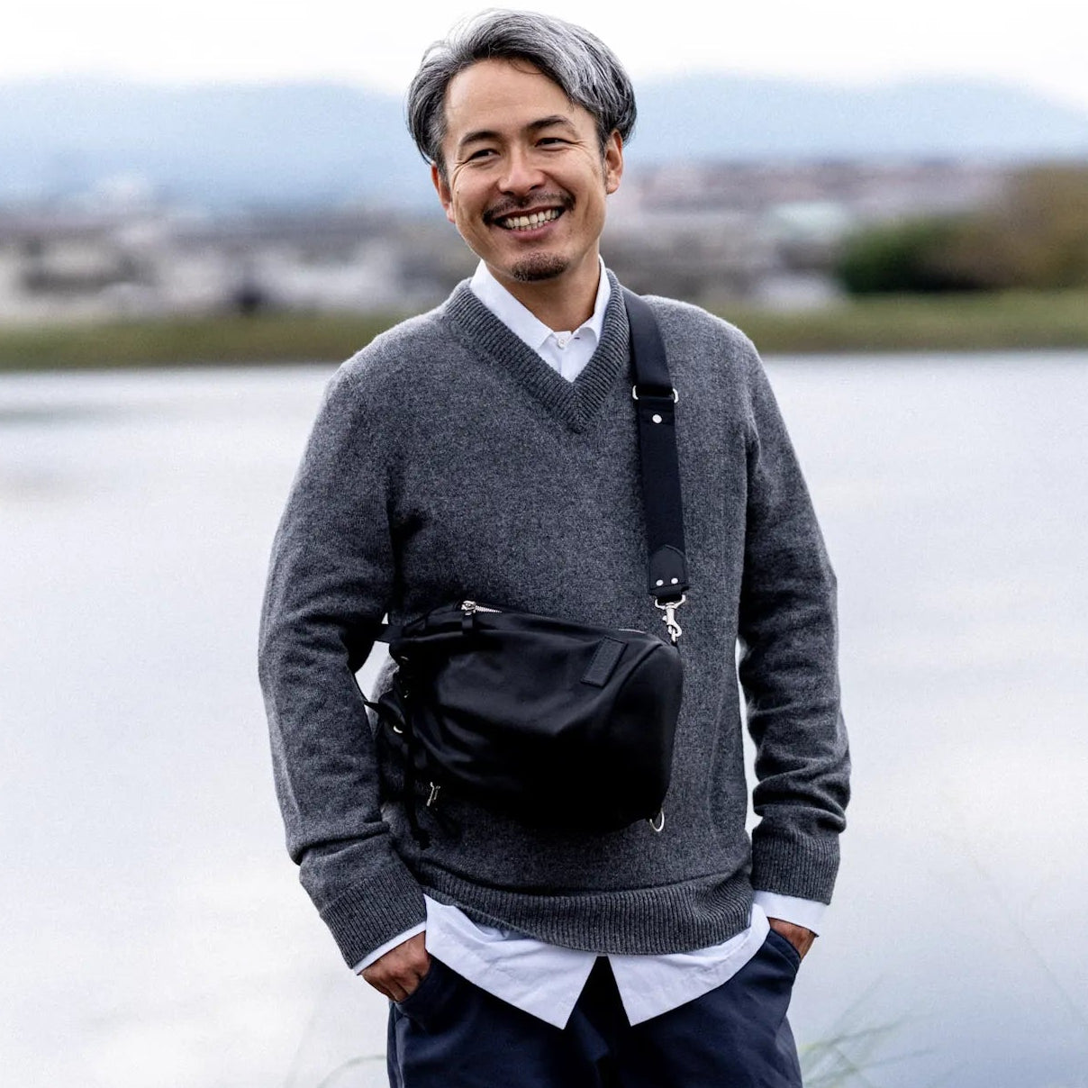 バッグ下部の左右2箇所にDカンを装備。付属のショルダーストラップを付け替えることで右掛け左掛けどちらにも対応します。さらに別売りのストラップを追加することでリュックにも変身。手持ち、肩掛け、両肩がけと3通りのスタイルが楽しめます。